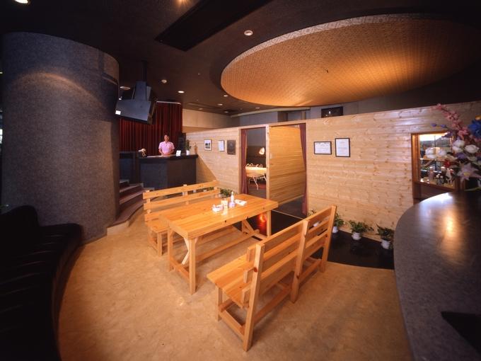 館内のしんわダイニング「天・地・海」にも同じ竹あかりが灯され